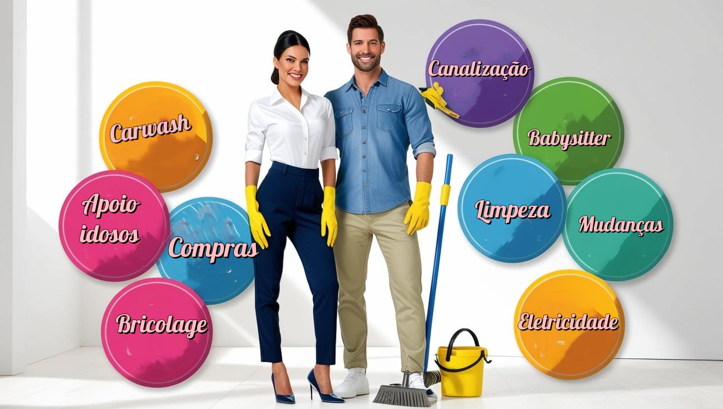 Dom-Serviços reúne empresas parceiras altamente especializadas e confiáveis em cada área — canalização, eletricidade, renovação de telhados, mudanças, delivery, pet sitting e baby sitting.